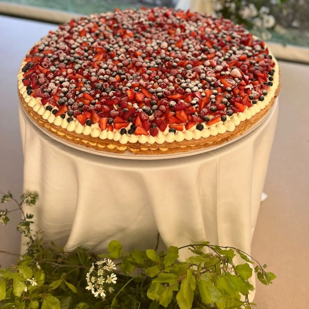 The Italian Millefoglie is a traditional Italian dessert with a flavour as rich as its history. The name meaning ‘A thousand layers’ refers to the layers of delicate, flaky puff pastry that is contrasted with a delicious Italian pastry cream known as ‘Crema Pasticcera’. The cake is topped with a layer of Chantilly cream and lots of summer fruits, then dusted with icing sugar for that finishing touch. This cake has its roots in the French mille-feuille but adopted its own identity and tradition within the world of Italian Pasticceria. The cake's delicate and light texture make it the perfect dessert for summer weddings, offering a sensational mix of elegance and simplicity.
