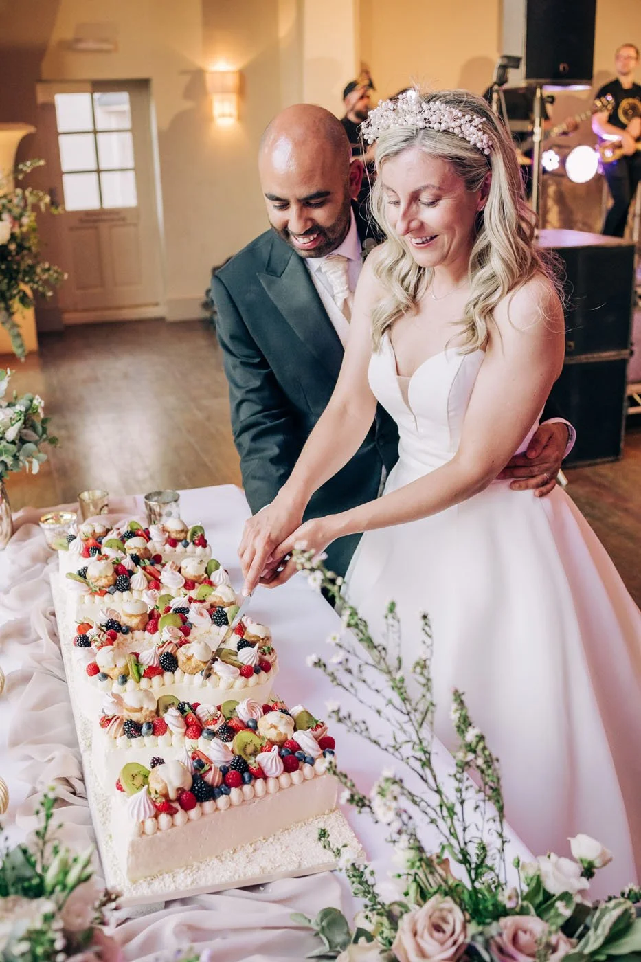 This cake choice has its advantages if you want your wedding cake to have a more bespoke exterior. There tends to be more decorative scope than with the Millefoglie, giving a more traditional feel to the wedding cake and the ability to bring elements of your wedding style, décor and colour scheme to the cake. There are also more flavour options and combinations with the sponge and liqueur elements and numerous tiers.