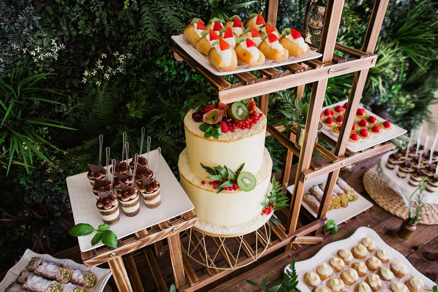 Most couples who opt for a wedding dessert table feel this way, so adding a single tier cutting wedding cake at the centre of your wedding dessert table would allow for ‘the cutting of the cake’ photo moment and an opportunity to declare the wedding dessert table open.