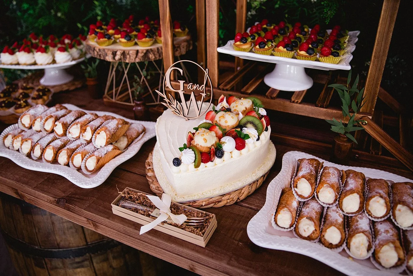If you are not sticking with tradition when it comes to wedding cake, then don’t feel the need to do so when it comes to timings either. A wedding dessert table full of mini-Italian patisserie can work in several ways.